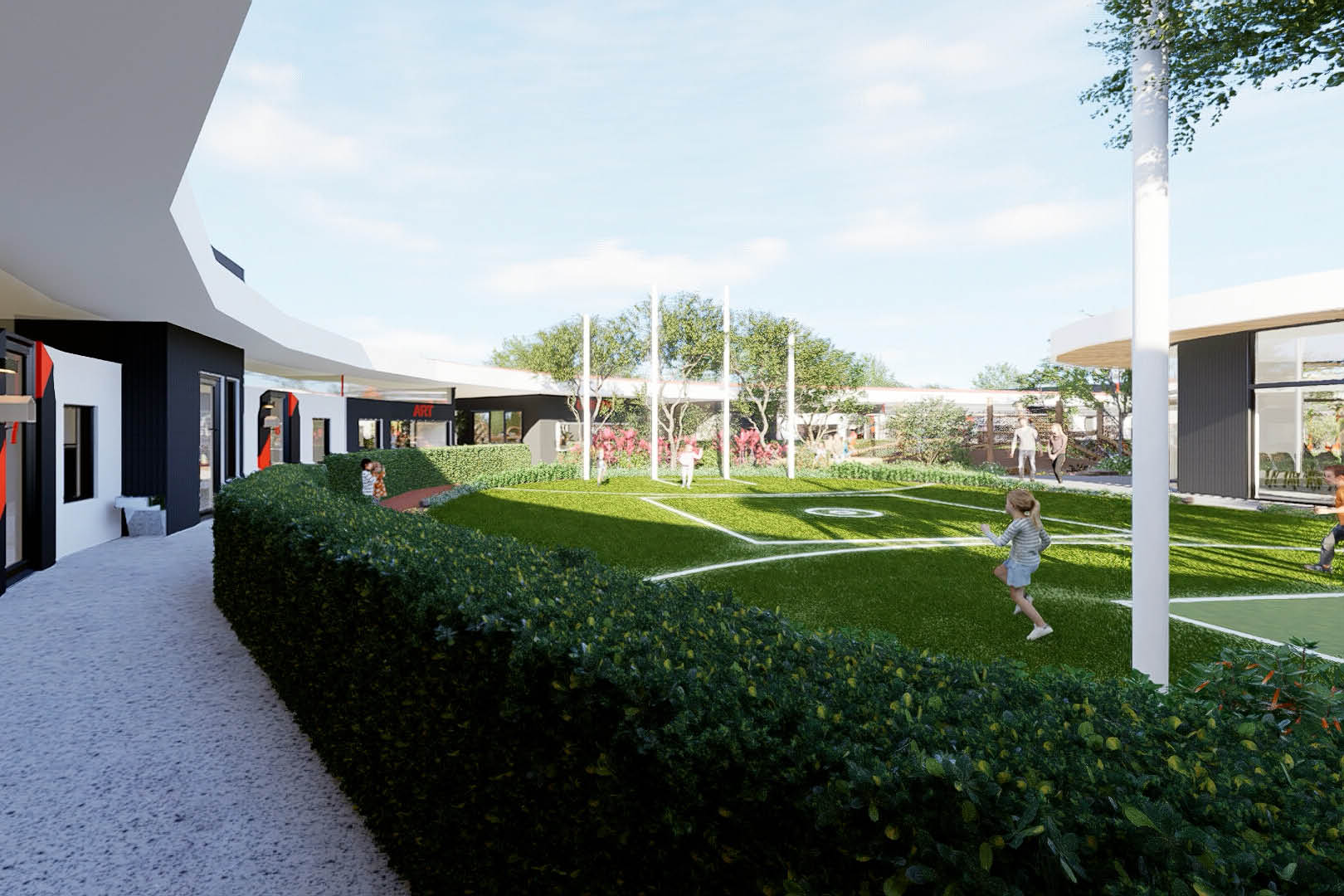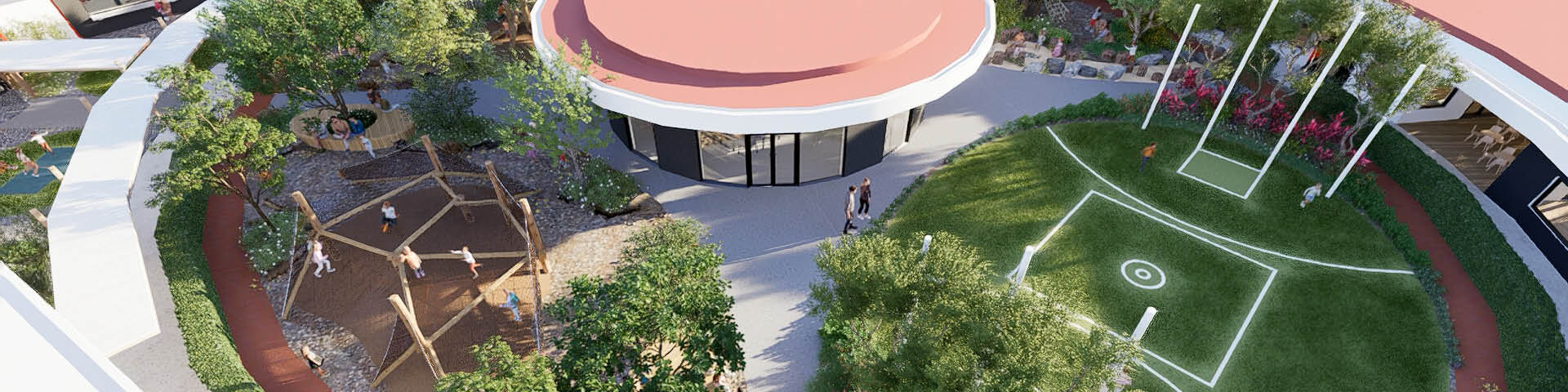 Enveloped within the vibrancy of a football field, this child care establishment serves as a distinctive convergence of recreation and education. At its core lies an expansive courtyard cocooned by verdure, offering a secure haven. Within this green expanse, a football field and assorted activity zones encourage diverse forms of engagement, inviting children to harmonize with the rhythms of nature.