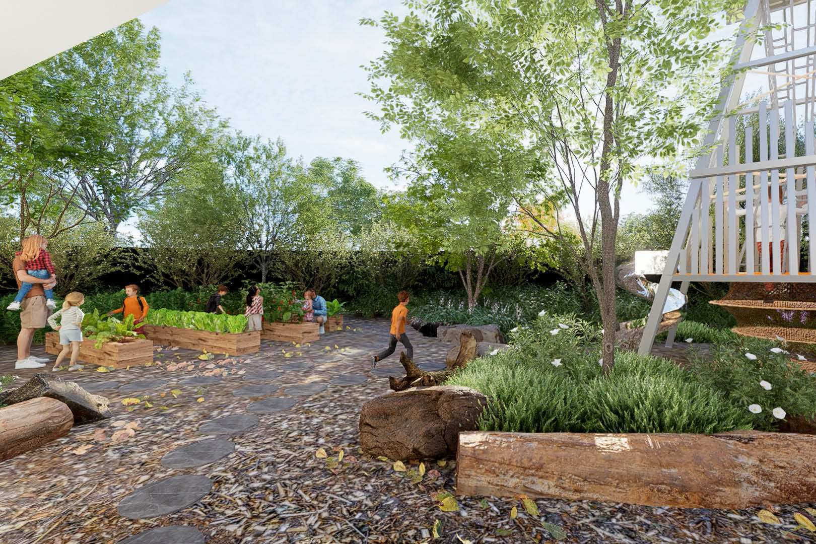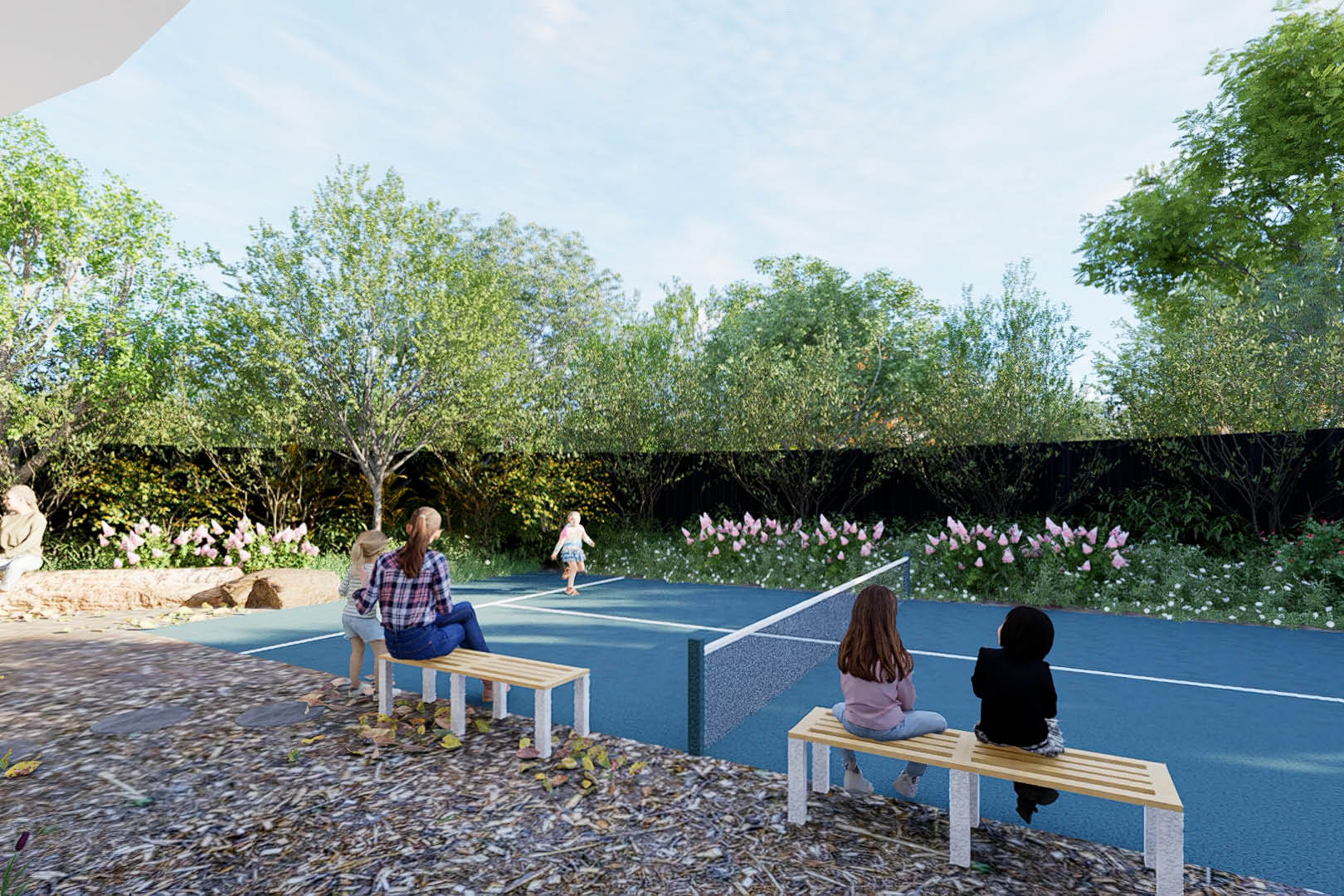 Comprising five distinct playgrounds, a football field, and a tennis court, the surroundings reverberate with the laughter and vitality of children immersed in dynamic pursuits. An aviary and vegetable garden further enrich the landscape, enabling young minds to intimately explore the natural world.